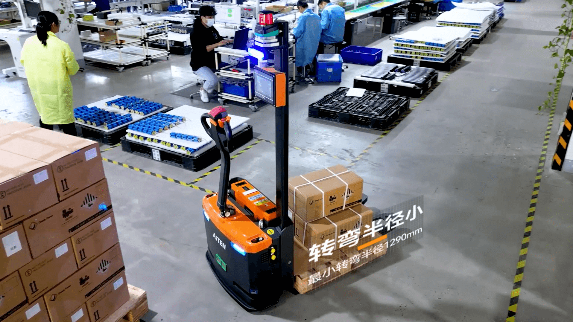②协作机器人:无人叉车将实现人机交接,例如自动叉车将托盘运送到人工包装站。